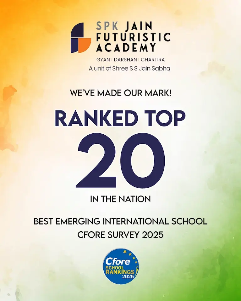 We are proud to share that Jain Futuristic Academy (JFA) has been ranked Top 20 in the nation and 2nd position in Best Emerging International Schools in India in the prestigious C-fore School Rankings 2025.