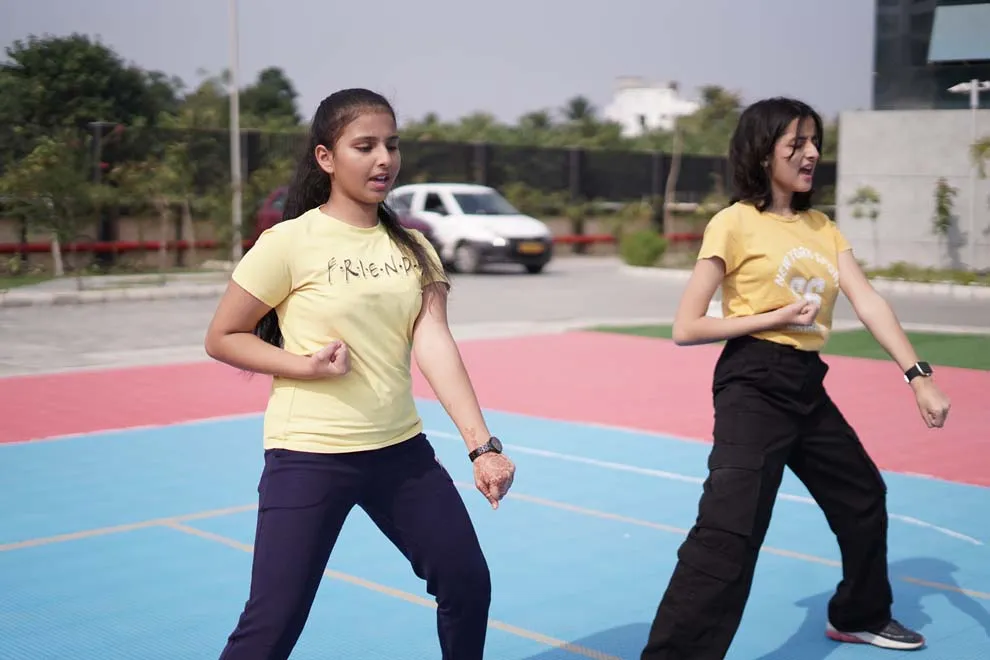 Our Outdoor Games Facility features a multi-purpose court for basketball, tennis, and pickleball, along with dedicated areas for football, roller skating, judo, gymnastics, and yoga. The open field and running track promote strength, agility, and overall well-being, encouraging students to push their limits and explore their full potential.