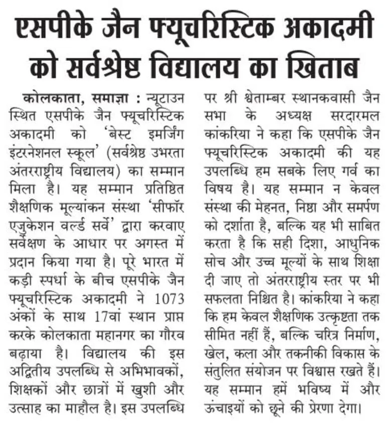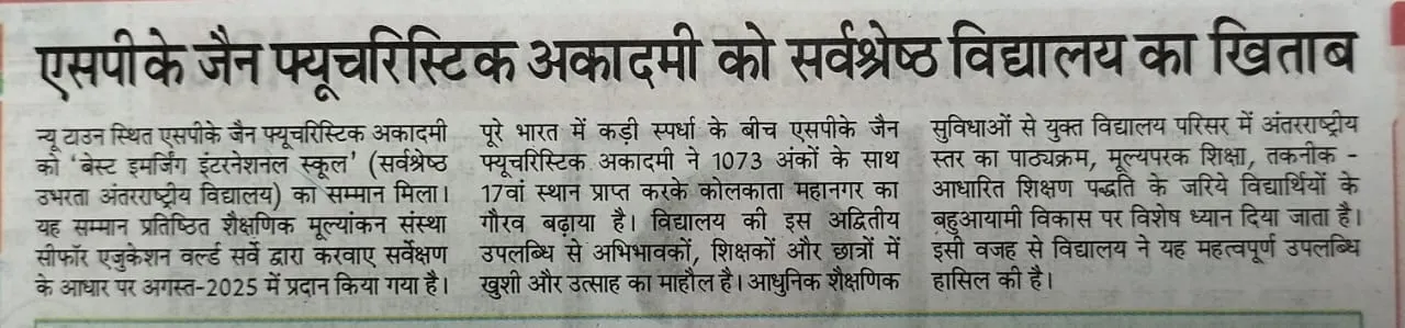 Jain Futuristic Academy Recognized Among the Best Emerging International Schools in India