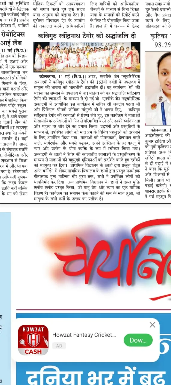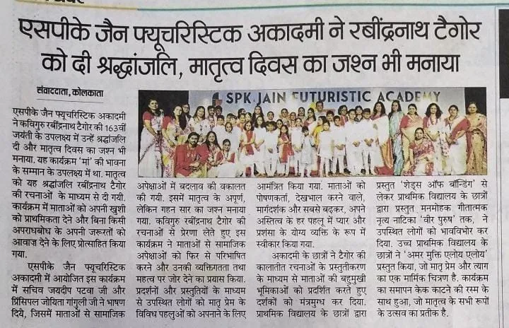 SPK Jain Futuristic Academy pays tribute to Rabindranath Tagore, celebrates Mother's Day