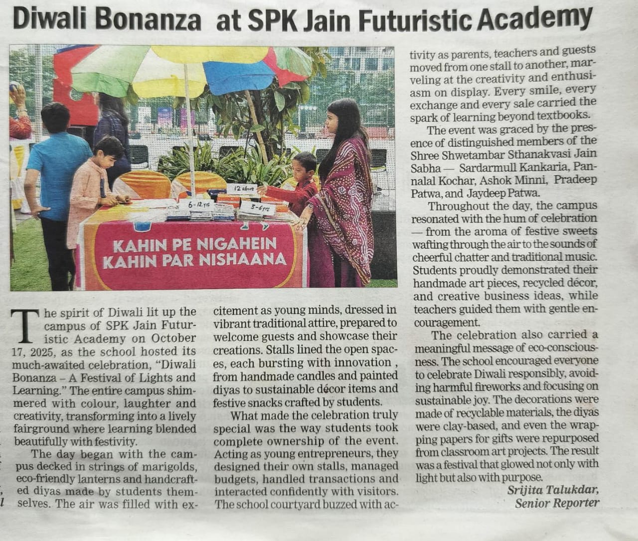 SPK Jain Futuristic Academy celebrated “Diwali Bonanza – A Festival of Lights and Learning” with vibrant enthusiasm.