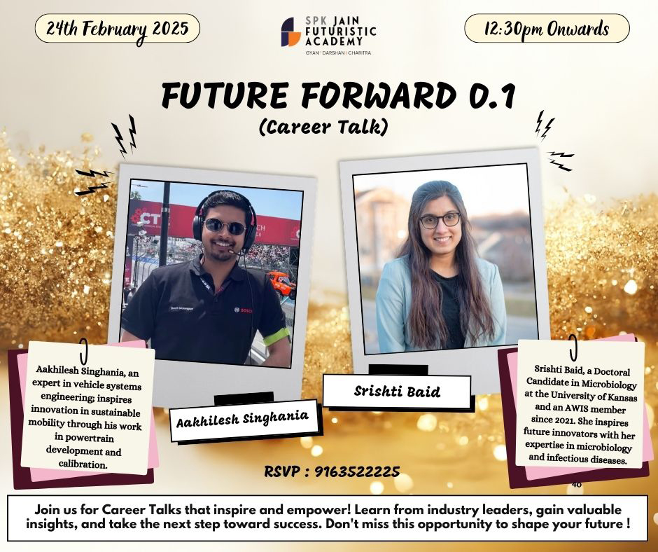 Jain Futuristic Academy proudly hosted Future Forward 0.1, an extremely engaging and interactive career talk session with Srishti Baid and Akhilesh Singhania! Our students had the opportunity to freely share their opinions and ideas with the mentors, making this session truly insightful and dynamic. They explored how to turn their passions into careers, gained valuable industry insights, and were inspired to dream big and stay determined on their journey to success! A huge thank you to our esteemed speakers for igniting the spirit of learning and ambition among JFA elementary students. The right mentorship can shape the future!
